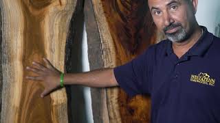 This unusual species has a dark orangish-red cast to the heartwood and it streaked with dark brown to black "tiger stripes". It does tend to darken with age. We have many slabs that are crotch pieces, on one end they will have a flame pattern (See photos below).